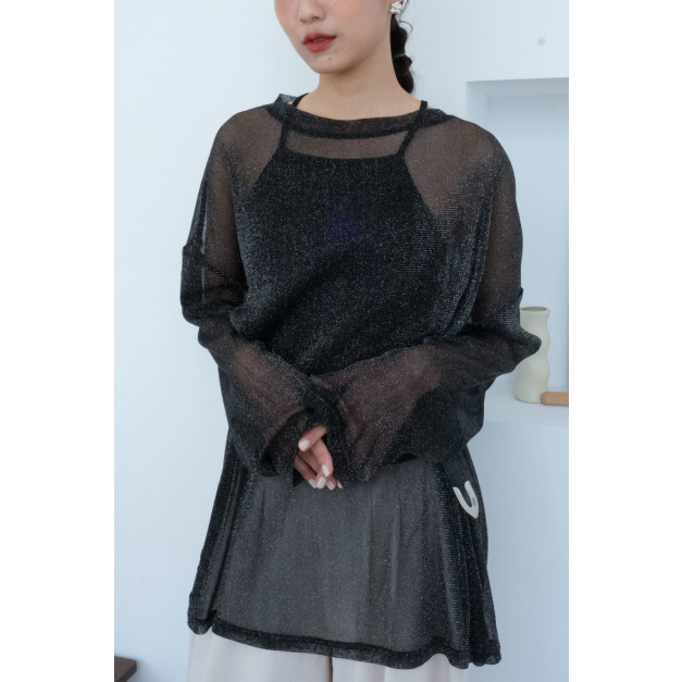 抗靜電!柔軟手袖拼色針織上衣|黑
