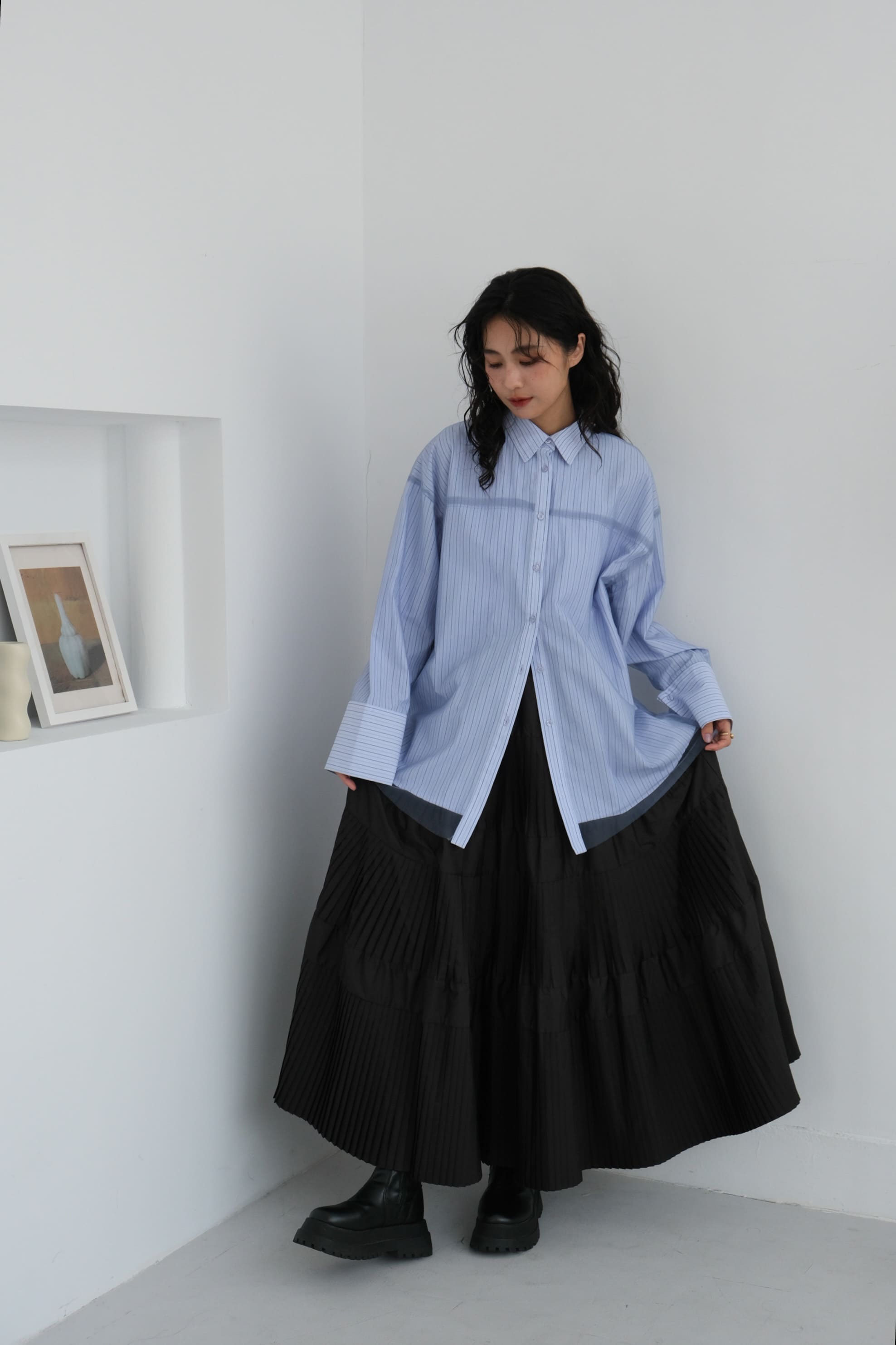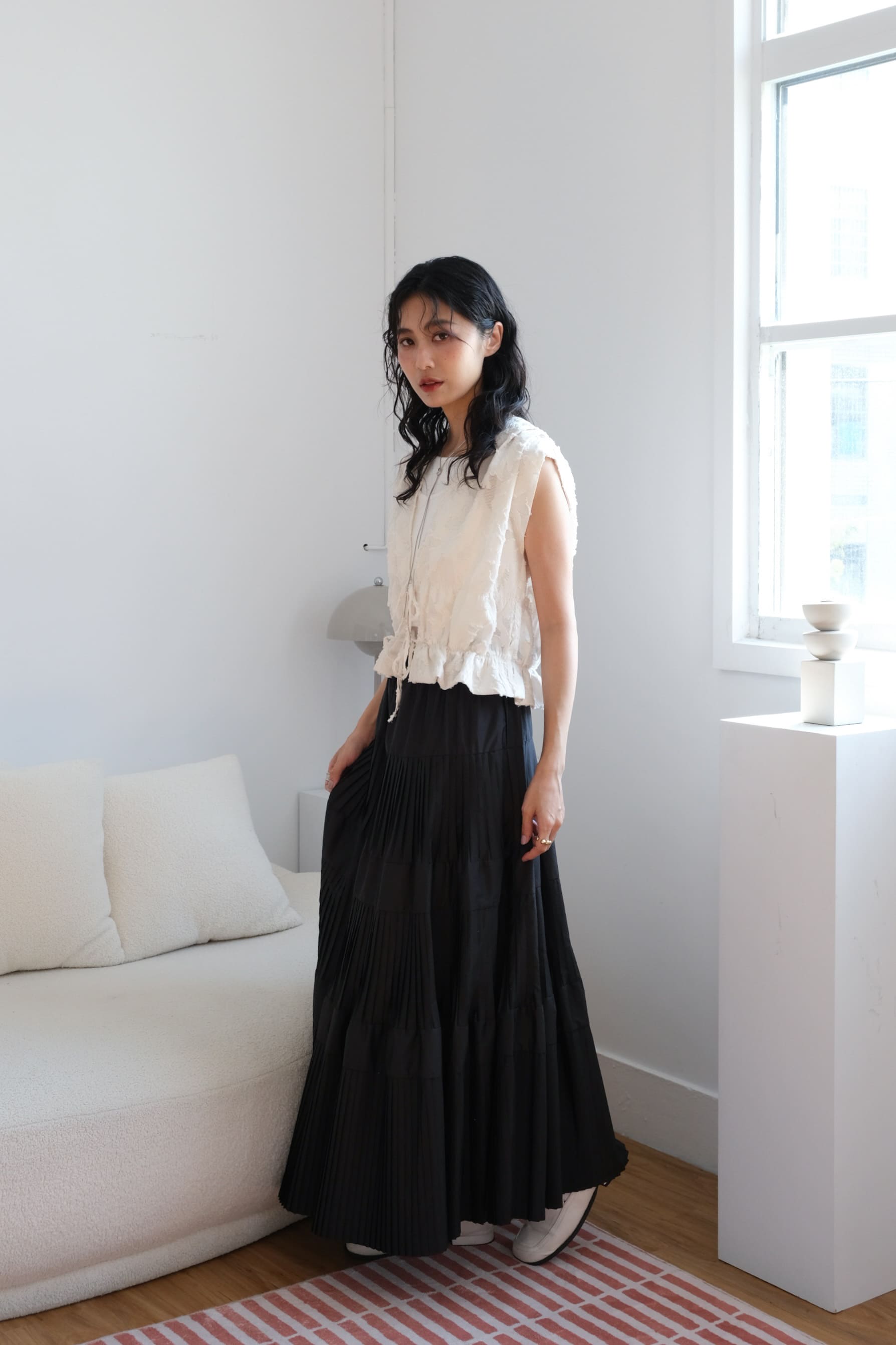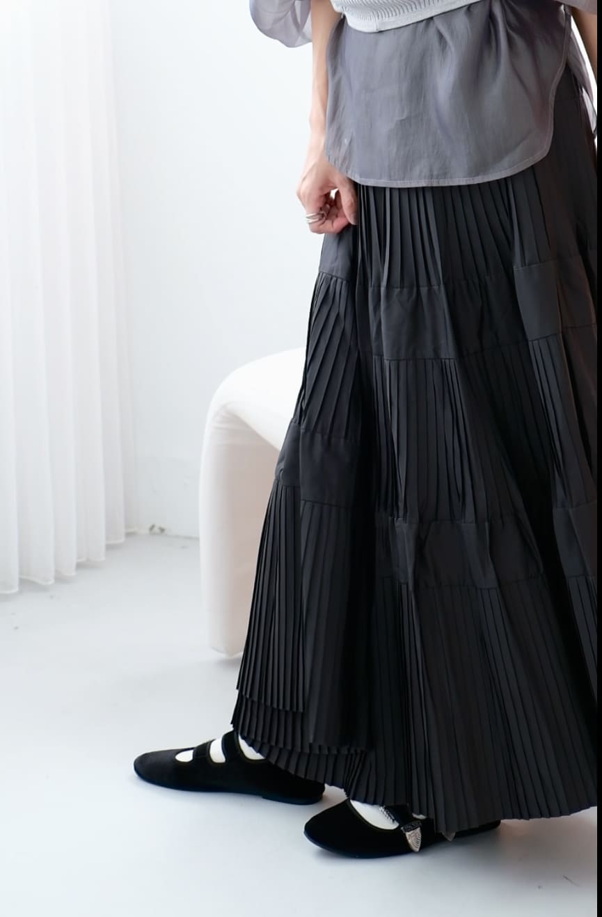 △分層百摺設計 視覺上拉長下身比例
